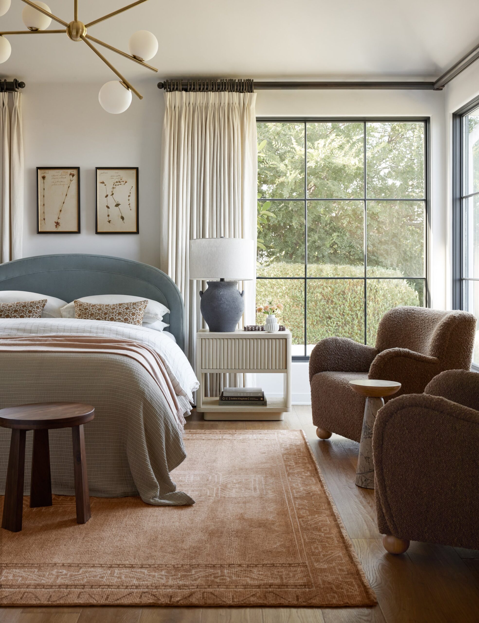 This tribal-inspired bedroom rug features a refined hand knotted construction crafted from premium wool. The soft rust base with subtle geometric motifs creates a calm, grounded look that works beautifully in bedroom interiors.